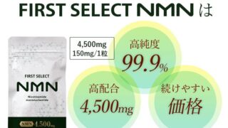 ファーストセレクトNMN(FIRSTSELECT NMN)は1粒150mgのβ-NMNを配合したサプリです。ファーストセレクトNMN(FIRSTSELECT NMN)は第三者機関で高純度β-NMNであることを確認しています。口コミや評判は?