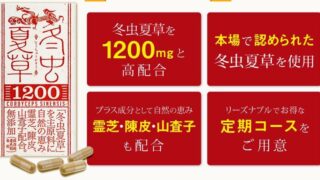 サプリメント 冬虫夏草1200はサポート成分も充実!口コミや評判は?おすすめ? 冬虫夏草1200は本場でも認められた冬虫夏草を1粒あたり300mg配合しています。冬虫夏草1200は、その他にも充実のサポート成分を厳選して配合しています。冬虫夏草1200がおすすめできるサプリなのかどうか、口コミや評判などから調べました。 2026.03.24 サプリメント